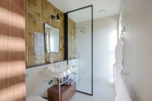 Inviting freedom and wonderment, open the louvres of the rainwater-fed shower. What a view!